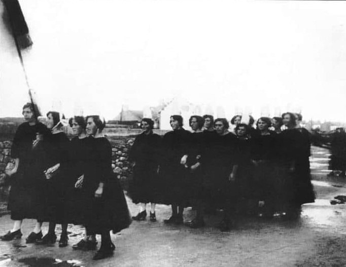 Nouvelle manifestation des ouvrières d’usine de Lesconil qui se rendent en cortège au Guilvinec et manifestent dans les rues. Les ouvrières du Guilvinec se mettent également en grève.