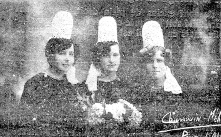 Mardi 30 : examen du certificat d’études primaires pour les filles de Saint-Guénolé à l’école des filles de Pont-l’Abbé. Six des huit élèves présentées sont reçues : Odette Auffret (1913-1929), Marcelle le Bourhis (1914-1946) avec mention bien, Marie Jeanne Le Floch (1913-1995), Marie Catherine Lucas (1912-1983), Anna Rioual (1914-1973) et Eugénie Stéphan (1912-2005).